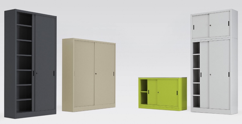 Le ante scorrevoli usano sistema di scorrimento su staffe zincate, provviste di cuscinetti a sfera rivestiti in nyolon.
